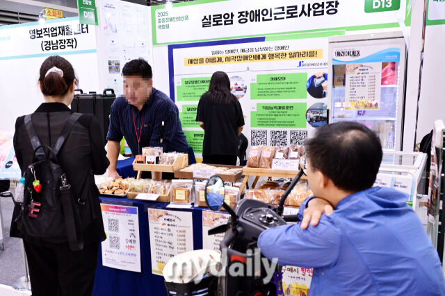 10일 오전 서울 양재동 at센터에서 진행된 '2025 중증장애인생산품박람회'를 찾은 관람객들이 홍보부스를 둘러보고 있다.
